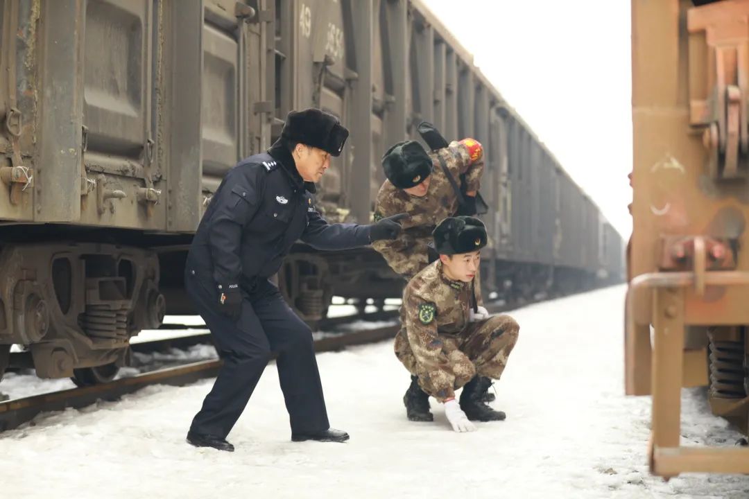春運期間,他負責接發中歐亞班列,無論白天亦或深夜,總能在一列列疾駛的班列旁看到他堅毅的背影。