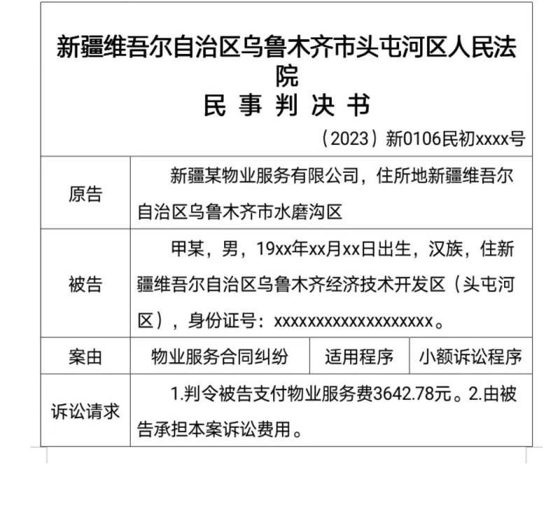 該院審理后認為,雙方對合同均無異議,僅對物業服務收費存在分歧。鑒于該案件事實清楚、權利義務關系明確、爭議不大,承辦法官適用“表格式”判決書,讓判決內容一目了然。