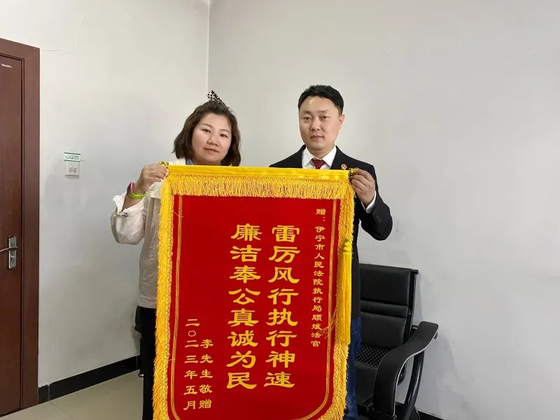 新疆平安網訊“顧法官,謝謝你幫我追回補償款?!?月11日,周女士對伊犁哈薩克自治州伊寧市人民法院高效辦案給予肯定并向法官顧斌贈送錦旗。