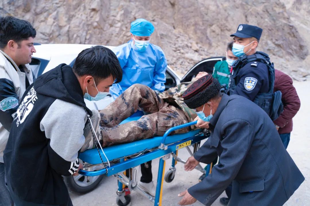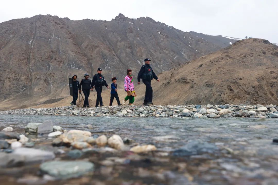 莫爾扎那扎爾和孩子們開啟了步巡模式。在海拔4000米的邊境一線巡邏2公里多,兩個孩子都累得走不動路。