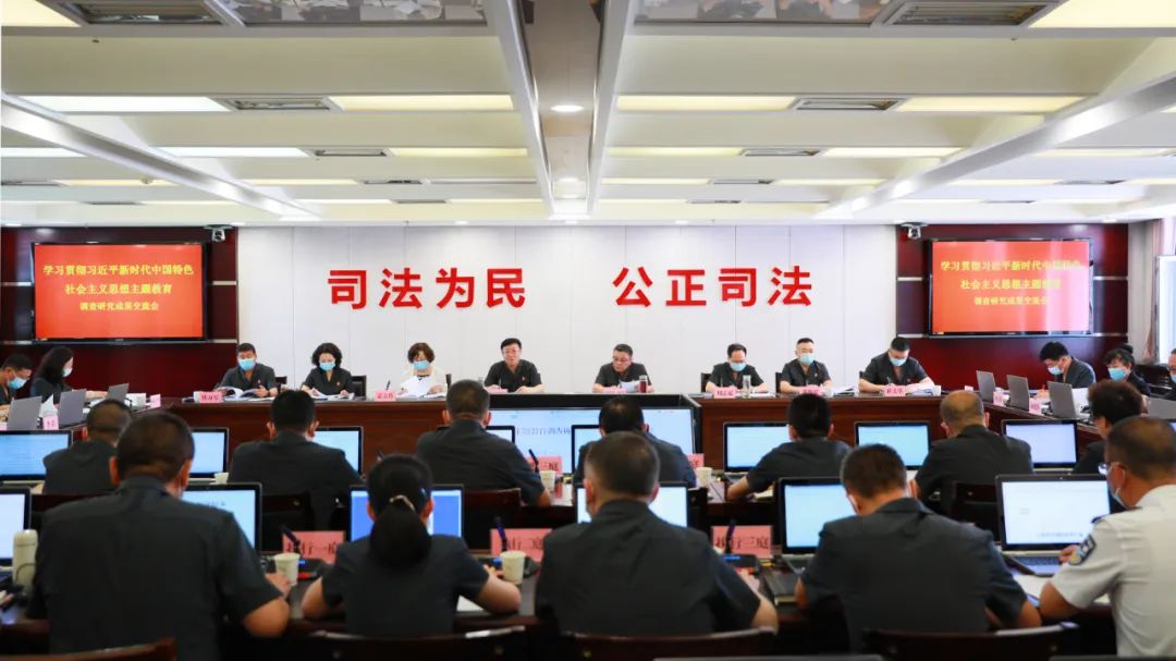新疆平安網訊 6月16日,自治區高級人民法院主題教育調研成果交流會召開。在自治區高院黨組書記都紅巖主持下,黨組班子成員及廳級領導全面梳理匯總調研情況,深入交流調查研究成果和收獲體會,推動調研成果轉化為厚植黨的執政根基、提升審判工作質效、促進法院工作高質量發展、滿足人民群眾司法獲得感的實際成效。自治區主題教育第二巡回指導組專程到會指導。院長、黨組副書記迪里夏提·沙依木及在家院領導參加會議。