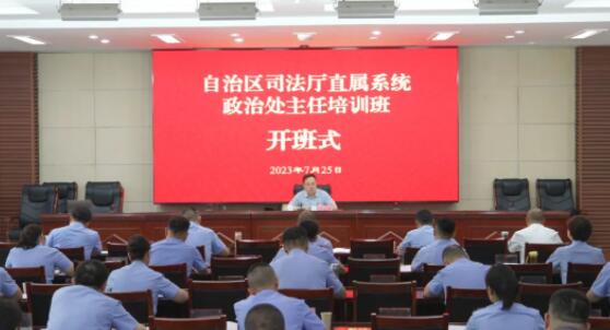 新疆平安網訊 7月25日,自治區司法廳直屬系統政治處主任培訓班在新疆司法警官職業學院開班。此次培訓班主要任務是深入學習貫徹習近平法治思想,扎實推進主題教育,完整準確貫徹新時代黨的治疆方略,進一步加強和改進新時代司法行政政治工作,為鍛造新時代司法行政鐵軍提供堅強政治保證。