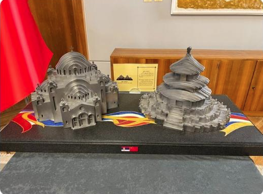 在塞爾維亞,兩國(guó)元首舉行會(huì)談后,習(xí)近平主席送給武契奇兩件用鋼材制作的工藝品,分別是天壇和圣薩瓦教堂造型。武契奇很有興趣,上前仔細(xì)端詳。