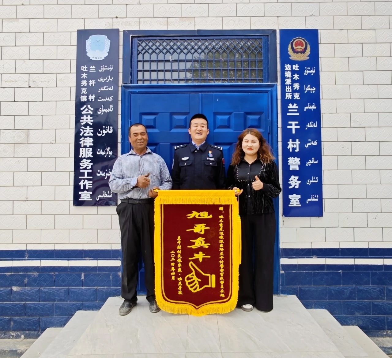 當天,看到妹妹幸福的樣子,依爾盤決定制作一面錦旗送給“旭哥”表達感謝,于是出現文章開頭一幕。
