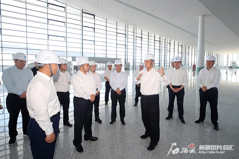 6月15日,自治區(qū)黨委書記馬興瑞、自治區(qū)主席艾爾肯·吐尼亞孜等在烏魯木齊機場T4航站樓聽取機場改擴建工程規(guī)劃建設(shè)工作匯報,向有關(guān)方面負責同志詳細了解各項工作進展。天山網(wǎng)-新疆日報記者 崔志堅攝