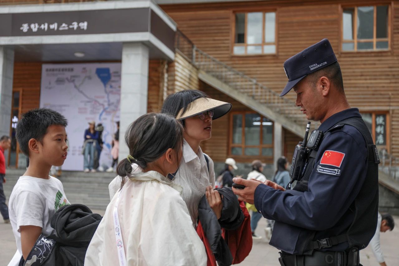 “大家先把隊伍排好”“后面的游客不要擠了”“您看這是您丟失的物品嗎”……這樣的話,從一上勤開始,直到夜幕降臨,劉愛龍不斷地重復著,這也是劉愛龍一天說得最多的話。