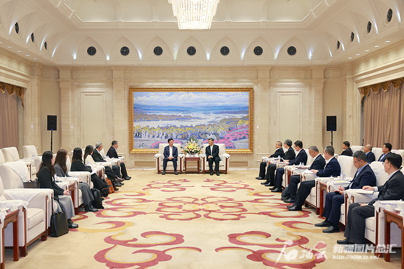 10月20日,自治區黨委書記馬興瑞、自治區主席艾爾肯·吐尼亞孜在烏魯木齊會見新加坡衛生部部長王乙康一行。天山網-新疆日報記者 崔志堅攝