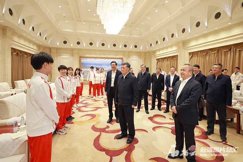 11月25日,自治區黨委書記、兵團黨委第一書記、第一政委馬興瑞,自治區黨委副書記、自治區主席艾爾肯·吐尼亞孜在烏魯木齊會見國家體育總局黨組書記、局長高志丹和參加“決勝巴黎·綻放奧運——奧運冠軍面對面”巡回宣講活動的奧運健兒代表。天山網-新疆日報記者 崔志堅攝