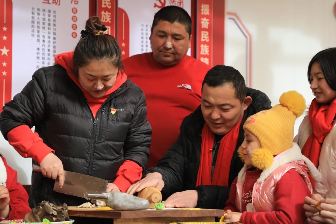 另一邊,在村民阿依姆妮薩古麗·奧布力喀斯木家中,她們一家人正和自治區黨委政法委駐村工作隊隊員、村“兩委”干部圍坐在一起,一同制作傳統美食——餃子。大家一起揉面、搟皮、和餡,手上不停;孩子們也不閑著,在一旁幫忙遞調料,小手忙得不亦樂乎。屋子里彌漫著美食的香氣,歡聲笑語不斷。