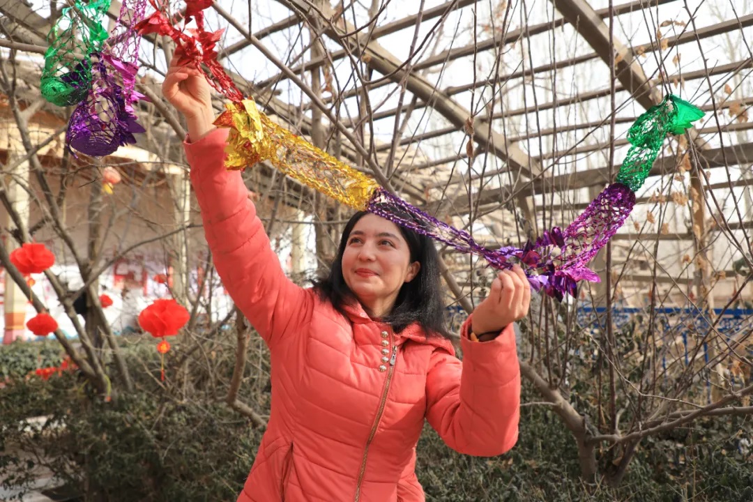 村里鑼鼓喧天,村民家里也不遑多讓。站敏鄉艾日克貝西村農民布艾杰爾·吾守爾正和家人將精心挑選的“福”字、紅燈籠、拉花,掛到自家門頭。“馬上到春節了,我們買了一些紅燈籠,將對聯貼到家門口,高高興興地過年,這樣特別有年味。”她說。
