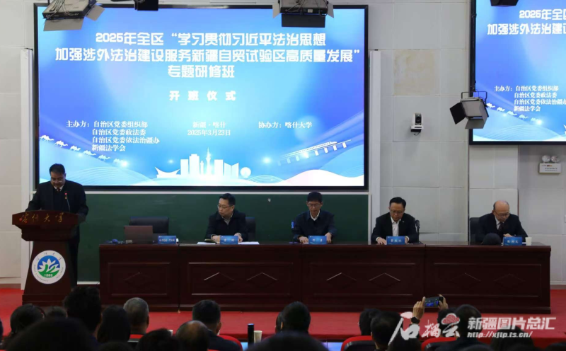 3月23日,2025年自治區“學習貫徹習近平法治思想 加強涉外法治建設 服務新疆自貿試驗區高質量發展”專題研修班在喀什大學開班。新疆法學會供圖