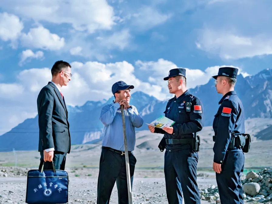 2024年7月22日,新疆喀什邊境管理支隊(duì)塔什庫爾干邊境派出所聯(lián)合塔什庫爾干縣人民法院法官走進(jìn)轄區(qū)農(nóng)牧民生產(chǎn)作業(yè)點(diǎn)宣講法律法規(guī),解答群眾疑難問題。 視覺中國?王九峰/攝